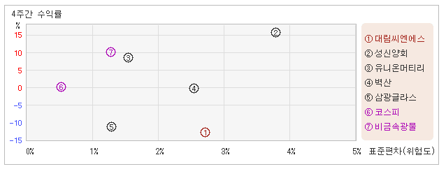 | 대림씨엔에스 | 2.7% | -12.9% | -4.7 |
