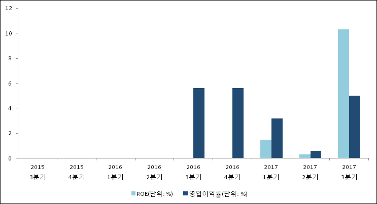 이번분기 기준으로 추정되는 텔레칩스의 자기자본이익률(ROE)은 10.3%로 나타났다. 이는 최근 일년과 비교했을 때 급등한 수치이다. 3분기 자기자본은 상승하였으나 당기순이익 상승폭이 더 컸기 때문이다. 한편 동종목의영업이익률은 5%이다. 지난해 동기 영업이익률은 5.6%로 이번 3분기에 0.6%p 하락했다.