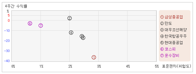 | 삼성중공업 | 한국항공우주 | 만도 | 대우조선해양 | 현대중공업 | |