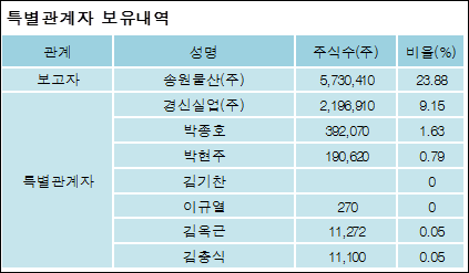 다음은 송원산업의 지분 변동 내역과 보유 내역이다.