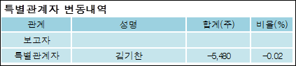 최대주주와 특수관계자의 지분 변동은 주가에 영향을 주는 요인이다. 특히 보유비율을 지속적으로 늘리거나 줄일 경우, 해당종목 투자시 유의할 필요가 있다.