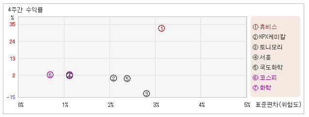 | 휴비스 | 국도화학 | 토니모리 | 서흥 | KPX케미칼 | |