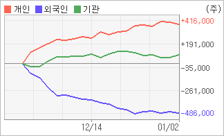 기관/개인 순매수, 외국인은 순매도(한달누적) 전일 기관이 32,149주를 순매수했고, 외국인은 13,361주를 순매도했다. 4주간을 기준으로 보면 기관이 방향성있는 매매를 하면서 92,095주를 순매수했고, 개인들도 순매수량을 늘리며 385,536주를 순매수했다. 반면 그 동안 외국인은 매도 우위를 지속하면서 477,631주를 순매도했다.