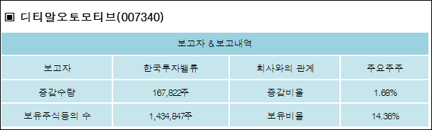 다음은 디티알오토모티브의 지분 변동 내역과 보유 내역이다.