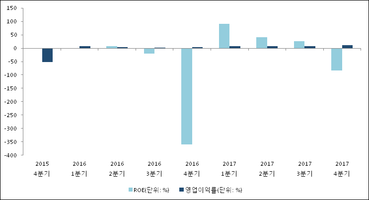 이번분기 기준으로 추정되는 고려개발의 자기자본이익률(ROE)은 -82.9%로 나타났다. ROE는 최근 3분기 이상 연속으로 하락했다. 전년 동기인 2016년 4분기 ROE는 -359.8%로 이번 분기에 276.9%p 상승했다. 한편 동종목의영업이익률은 10.4%이다. 지난해 동기 영업이익률은 3.6%로 이번 4분기가 6.8%p 상승했다.