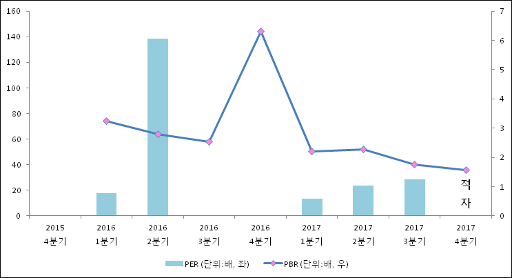 주가가 1주당 순자산의 몇배인지 알려주는 주가순자산비율인 PBR은 1.56배이다. 지난해 동기 PBR은 6.31배로 이번 4분기 PBR이 하락했다.