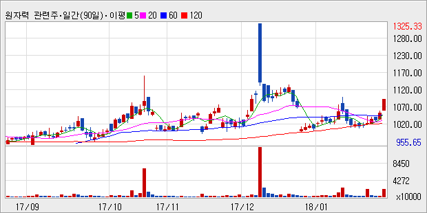 원자력 관련주(지수:1092.57 전일비:▲3.89%)