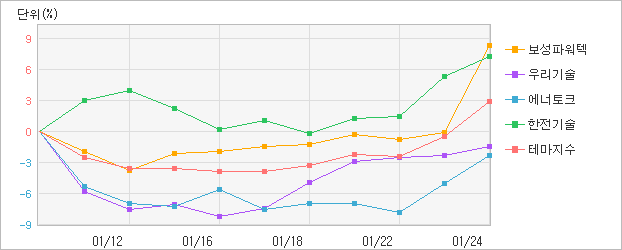 이 시각 현재 원자력 관련주 테마 내의 종목들이 모두 상승세를 보이며 좋은 모습을 보여주고 있다. 원자력 관련주 테마지수는 1092.57p로 전일보다 3.89% 상승하며 견조한 상승세를 나타내고 있는데 , 최근 10일 동안에는 6.31% 상승하는 모습이다. 당일 테마 내 종목현황을 살펴보면 보성파워텍, 에너토크, 한전기술이 각각 9.41%, 3.17%, 2.05% 오르며 상승세를 이끌고 있다.