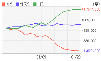 | 외국인/기관 순매수, 개인은 순매도(한달누적) 전일까지 기관이 9일 연속, 외국인이 2일 연속 각각 동종목을 순매수 했다. 4주간을 기준으로 보면 외국인이 초반에 동종목을 순매수한 이후에 기세를 이어가며 275,542주를 순매수했고, 기관도 방향성있는 매매를 하면서 1,346,101주를 순매수했다. 반면 개인들은 매도쪽으로 방향을 잡으면서 1,621,643주를 순매도한 것으로 나타났다. |