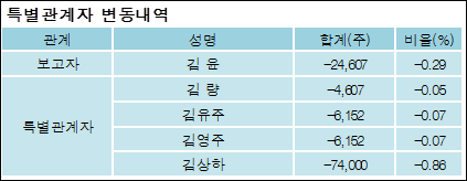 최대주주와 특수관계자의 지분 변동은 주가에 영향을 주는 요인이다. 특히 보유비율을 지속적으로 늘리거나 줄일 경우, 해당종목 투자시 유의할 필요가 있다.