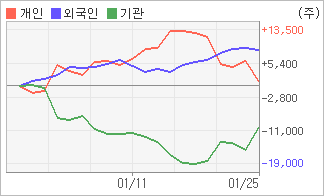 | 외국인/개인 순매수, 기관은 순매도(한달누적) 전일 기관이 5,267주를 순매수했고, 외국인은 444주를 순매도했다. 4주간을 기준으로 보면 외국인이 초반에 동종목을 순매수한 이후에 기세를 이어가며 8,805주를 순매수했고, 개인들도 매기를 떨어뜨리면서도 1,356주를 순매수했다. 하지만 기관은 매도 우위를 보이면서 10,161주를 순매도했다. |