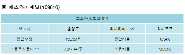 다음은 에스와이패널의 지분 변동 내역과 보유 내역이다.