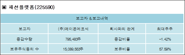 다음은 패션플랫폼의 지분 변동 내역과 보유 내역이다.
