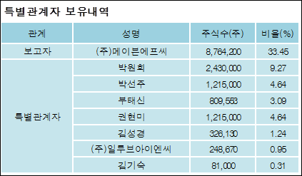 최대주주와 특수관계자의 지분 변동은 주가에 영향을 주는 요인이다. 특히 보유비율을 지속적으로 늘리거나 줄일 경우, 해당종목 투자시 유의할 필요가 있다.