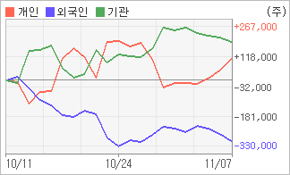 | 기관/개인 순매수, 외국인은 순매도(한달누적) 전일까지 외국인이 3일 연속, 기관이 4일 연속 각각 동종목을 순매도 했다. 4주간을 기준으로 보면 기관이 방향성있는 매매를 하면서 193,659주를 순매수했고, 개인들도 매기를 떨어뜨리면서도 107,886주를 순매수했다. 반면 그 동안 외국인은 매도 우위를 지속하면서 301,545주를 순매도했다. |