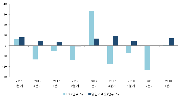 이번분기 기준으로 추정되는 CJCGV의 자기자본이익률(ROE)은 0.8%로 나타났다. 전년 동기인 2017년 3분기 ROE는 33.5%로 이번 분기에 32.7%p 하락했다. 한편 동종목의영업이익률은 6.9%이다. 지난해 동기 영업이익률은 6.8%로 이번 분기와 비슷한 수치이다.