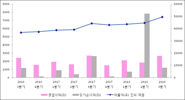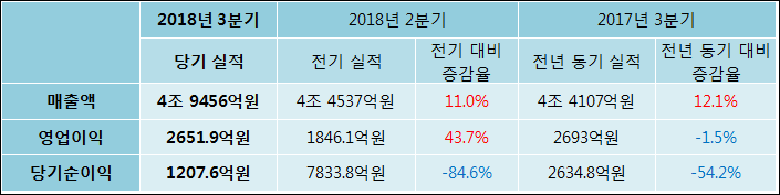 11월 08일 CJ제일제당(097950)의 2018년 3분기 연결 잠정 실적이 발표됐다. 지난해 같은 기간 대비 매출액은 12.1% 상승한 4조 9456억원으로 집계되었다. 그러나 영업이익과 당기순이익은 1.5%, 54.2%씩 축소되어 2651.9억원, 1207.6억원으로 발표됐다.