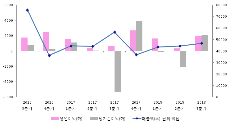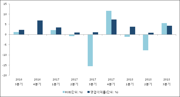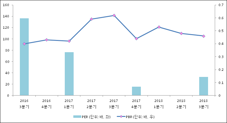 주가가 1주당 수익의 몇배가 되는지 나타내는 주가수익비율(PER)은 32.5배로 나타났다.주가가 1주당 순자산의 몇배인지 알려주는 주가순자산비율인 PBR은 0.46배이다. 지난해 동기 PBR은 0.62배로 이번 3분기 PBR이 하락했다.