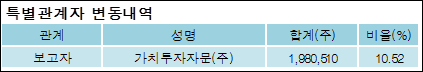 최대주주와 특수관계자의 지분 변동은 주가에 영향을 주는 요인이다. 특히 보유비율을 지속적으로 늘리거나 줄일 경우, 해당종목 투자시 유의할 필요가 있다.