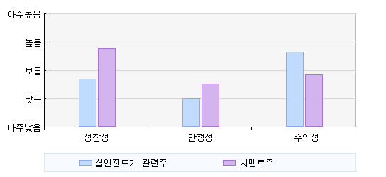 최근 하락세를 보였던 테마들 중 안정성(부채비율 기준)의 측면에서 차이를 보이고 있는 두 테마에 대해 투자에 필요한 몇 가지 항목들을 비교하여 나타냈다.