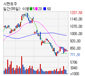 [테마 차트분석] 최근 20일 간 두 테마들의 움직임을 분석해보면 살인진드기 관련주 테마와 시멘트주 테마가 중장기에서 좋은 추세를 보여주지 못하고 있다.중장기측면에서는 유사한 모습을 하고 있는데, 두가지 테마들 전부 하락세가 점차적으로 강해지고 있다. 반면, 단기측면에서는 살인진드기 관련주 테마가 상승세의 움직임이 시작되고 있고, 시멘트주 테마는 횡보하는 모습이 계속되고 있다. 20일 이격도 측면에서 두 테마 모두 정상범위를 벗어나지 않고 있다.