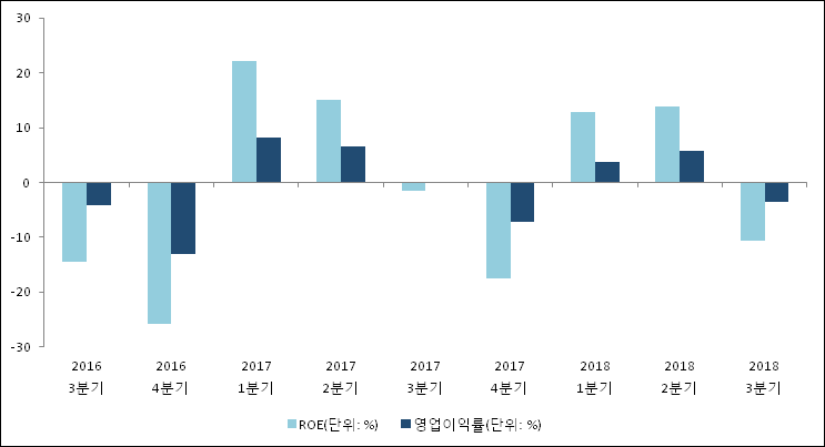 이번분기 기준으로 추정되는 대동공업의 자기자본이익률(ROE)은 -10.7%로 나타났다. 이는 최근 일년과 비교했을 때 급락한 수치이다. 전년 동기인 2017년 3분기 ROE는 -1.6%로 이번 분기에 9.1%p 하락했다. 한편 동종목의영업이익률은 -3.5%이다. 지난해 동기 영업이익률은 0%로 이번 3분기에 3.5%p 하락했다.
