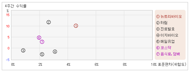 | 이지바이오 | 3.1% | -1.7% | -0.5 |