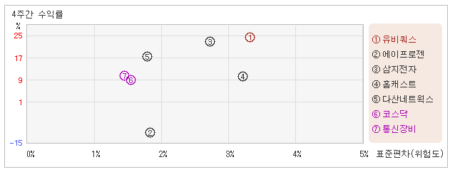 | 유비쿼스 | 3.3% | 24.7% | 7.4 |