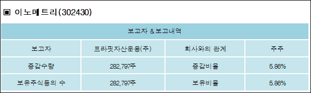 다음은 이노메트리의 지분 변동 내역과 보유 내역이다.