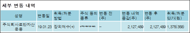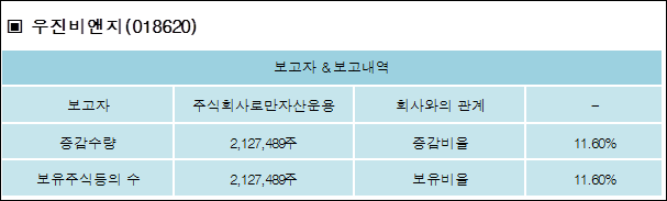 다음은 우진비앤지의 지분 변동 내역과 보유 내역이다.