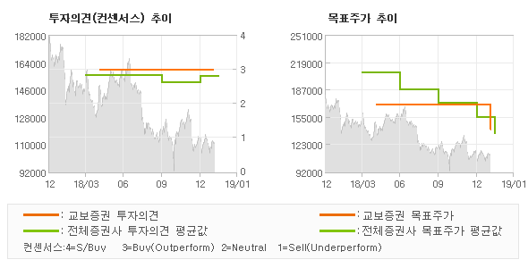오늘 교보증권에서 발표된 'BUY'의견 및 목표주가 140,000원은 전체의견에 수렴하면서 시장의 평균적인 기대감이 비교적 객관적으로 표현된 것으로 풀이되며 목표가평균과 대비해서 미미한 차이가 나는 것으로 집계되었다. 참고로 최근에 목표주가를 가장 공격적으로 제시한 하나금융투자에서 투자의견 'BUY'에 목표주가 180,000원을 제일 보수적인 의견을 제시한 KTB투자증권에서 투자의견 'HOLD'에 목표주가 94,000원을 제시한 바 있다.