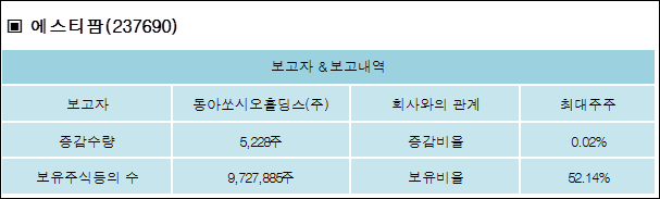 다음은 에스티팜의 지분 변동 내역과 보유 내역이다.