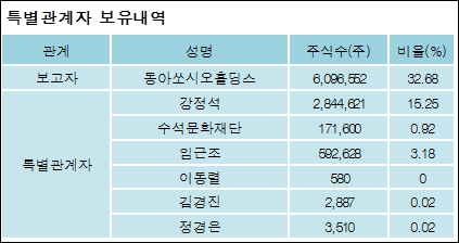 최대주주와 특수관계자의 지분 변동은 주가에 영향을 주는 요인이다. 특히 보유비율을 지속적으로 늘리거나 줄일 경우, 해당종목 투자시 유의할 필요가 있다.