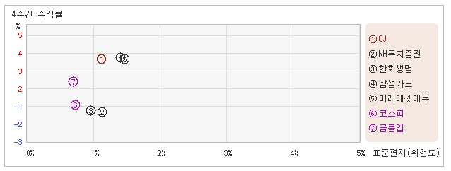 | CJ | 한화생명 | 삼성카드 | 미래에셋대우 | NH투자증권 | |