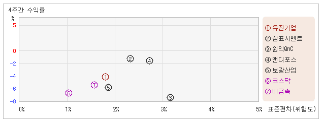 | 유진기업 | 1.8% | -5.3% | -2.9 |