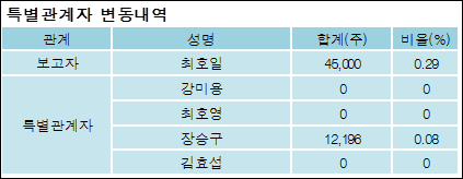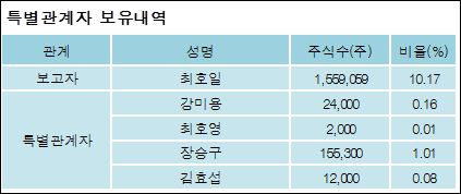 최대주주와 특수관계자의 지분 변동은 주가에 영향을 주는 요인이다. 특히 보유비율을 지속적으로 늘리거나 줄일 경우, 해당종목 투자시 유의할 필요가 있다.