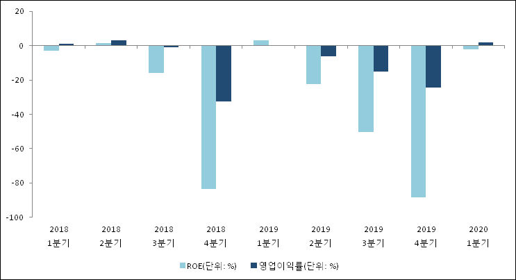 이번분기 기준으로 추정되는 현대로템의 자기자본이익률(ROE)은 -2.3%로 나타났다. ROE는 최근 3분기 이상 연속으로 하락하다 이번 분기에 상승했다. 전년 동기인 2019년 1분기 ROE는 3%로 이번 분기에 5.3%p 하락했다. 한편 동종목의영업이익률은 1.7%이다. 이는 최근 일년과 비교했을 때 급등하였다. 1분기 매출액, 영업이익 모두 상승했는데, 영업이익의 상승폭이 더 컸기 때문에 영업이익률이 상승했다. 지난해 동기 영업이익률은 0.2%로 이번 1분기가 1.5%p 상승했다.