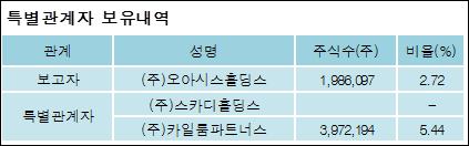 최대주주와 특수관계자의 지분 변동은 주가에 영향을 주는 요인이다. 특히 보유비율을 지속적으로 늘리거나 줄일 경우, 해당종목 투자시 유의할 필요가 있다.