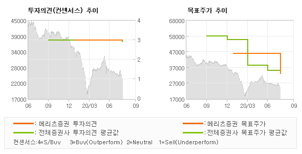 또한 메리츠증권에서 "2Q20 연결 실적은 매출액 4조 946억원(-16.0% YoY), 영업이익 -967억원(적전 YoY)으로 컨센서스를 하회했음. 별도 영업이익 성장률은 2020년 -13.5% YoY, 2021년 +0.2% YoY로 부진할 전망. 자산손상차손 규모 축소로 별도 당기순이익은 2020년 -2,663억원(적전YoY)에서 2021년 2,754억원(흑전 YoY)으로 반등할 전망."라고 밝혔다.