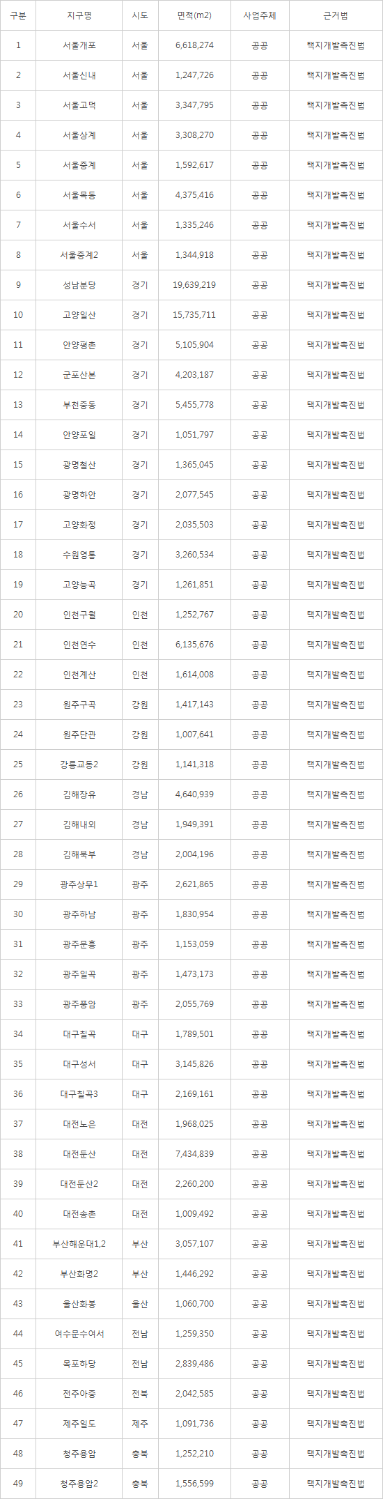 국토교통부가 7일 발표한 '노후계획도시 정비 및 지원에 관한 특별법' 골자에 따라 택지정보시스템에서 면적 100㎡ 이상을 대상으로 단순 추출한 지역은 전국 49곳에 이른다.