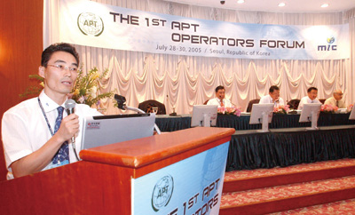 <APT 회원국 간 협력 체계는 국제전기통신연합(ITU)처럼 목표에 따라 세분화했다. 2005년 7월 28일부터 30일까지 사흘간 서울에서 열린 ‘제1회 APT 오퍼레이터스(Operators) 포럼’이 좋은 사례다. 이런 행사를 토대로 삼아 아태 지역 이동통신 기술 개발 전략이 큰 방향을 잡았다.>