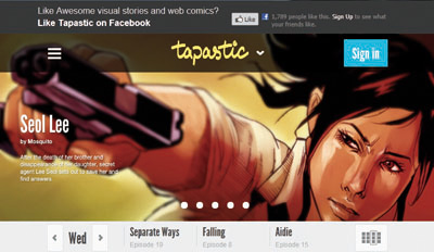 <“미국 시장을 겨냥합니다.” 2012년 10월 타파스미디어가 한국 만화를 미국에 소개하는 웹툰 사이트 ‘타파스틱(www.tapastic.com)’을 열었다.>