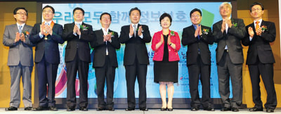 <“축하해요. 정보보호의 날.” 2012년 7월 11일 서울 잠실 롯데호텔에서 열린 제1회 정보보호의 날 기념식. 맹형규 행정안전부 장관(왼쪽에서 다섯 번째) 등이 축하했다.>