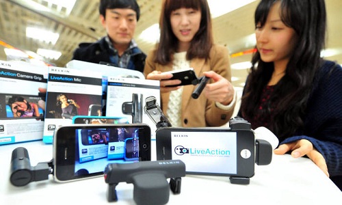 <벨킨의 앱세서리인 `라이브액션 카메라 그립`과 `라이브액션 마이크>