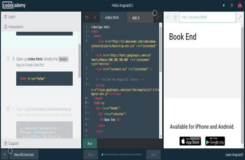 코드카데미는 직접 실행하면서 배우는 ‘런바이두잉(Learn by doing)’ 방식을 활용해 프로그래밍을 가르친다. 이론적 설명을 배우기보단 결과물을 만들어가면서 지식을 배우는 방식으로 왼쪽에는 코드를 어떻게 입력하는지 알려준다. 가운데는 직접 코드를 입력할 수 있는 창이 있다. 실행 버튼을 누르면 오른쪽에서 결과물을 확인할 수 있다.