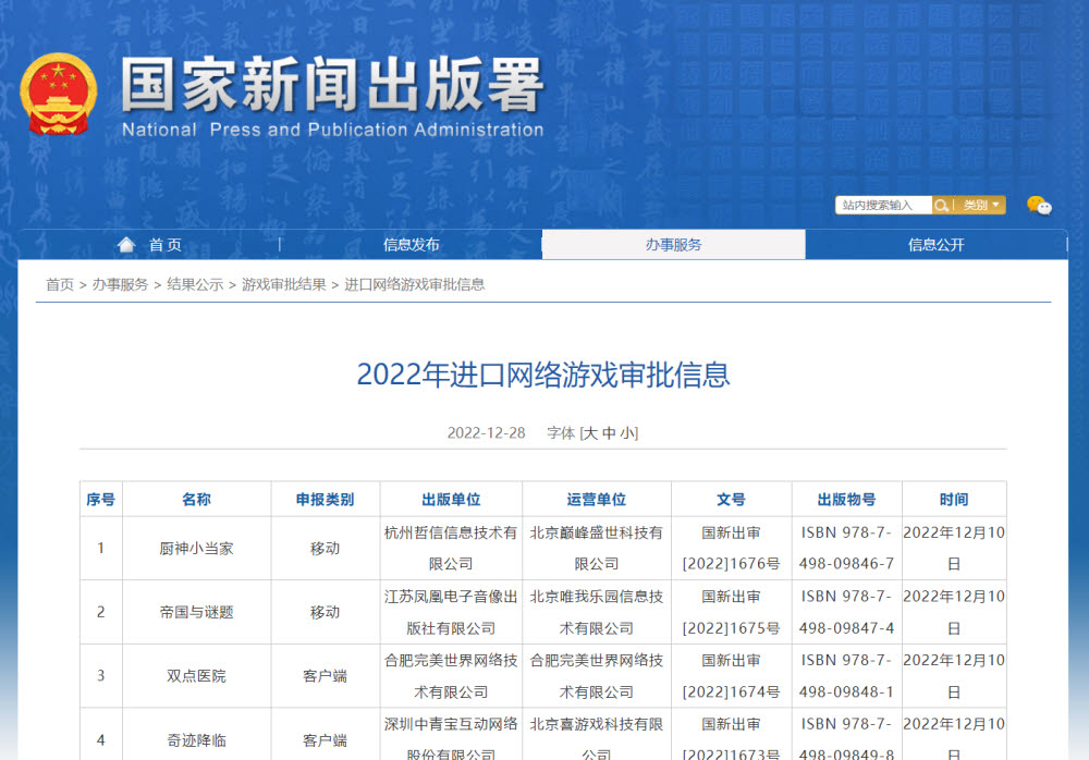 중국 당국은 2021년 7월 청소년 게임 중독 문제를 거론하면서 청소년 사용 시간을 규제하고 신규 판호 발급을 제한했다. 이듬해인 2022년에는 점진적으로 판호 발급 건수를 늘리며 규제를 완화하고 12월 한국 게임 7종을 비롯한 외산 게임 44종에 대한 외자판호를 전격 발급했다.